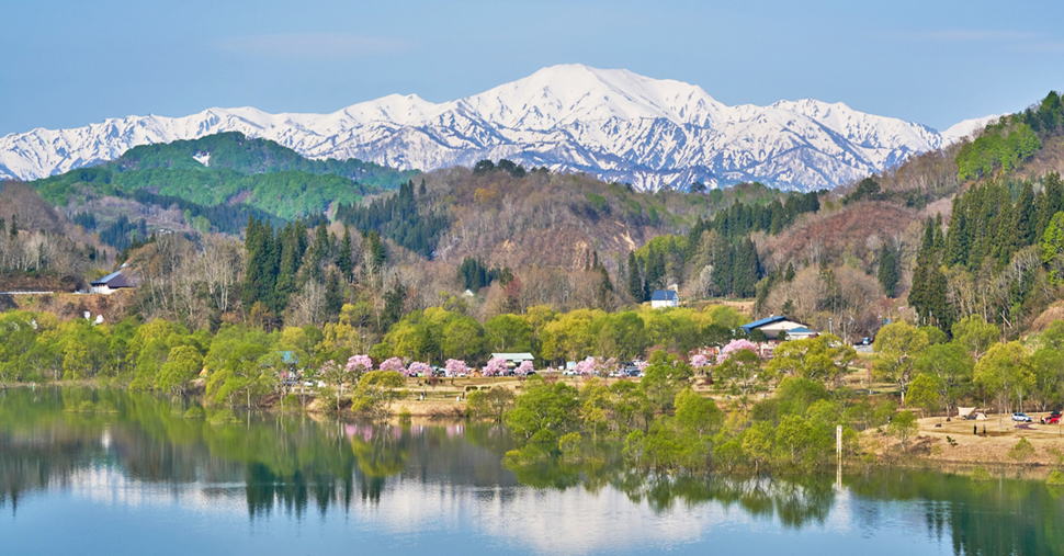 | *やまがた景観物語 ・ *湖畔から見る白川湖と飯豊連峰 ・ *ひと月だけの水没林 |