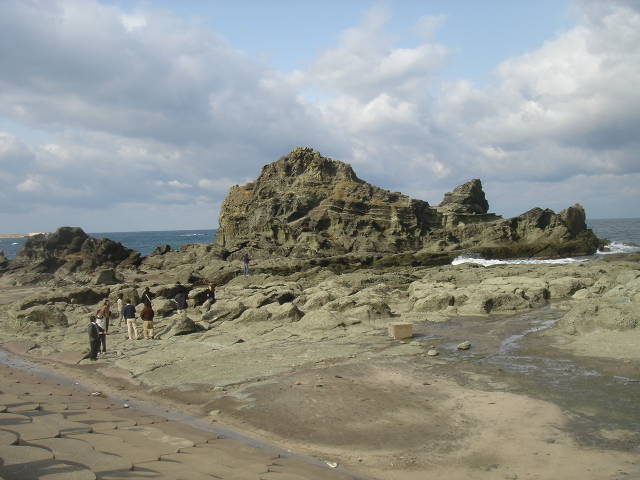 地震で海床が隆起した所で、「かぶと岩」、「潮吹き岩」などの奇岩が多くみられます。
